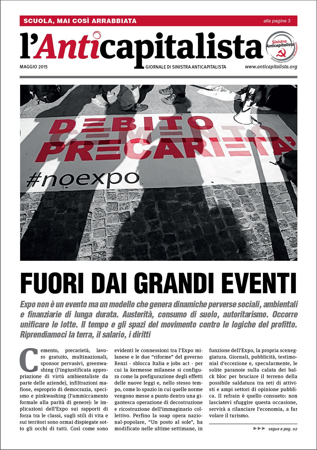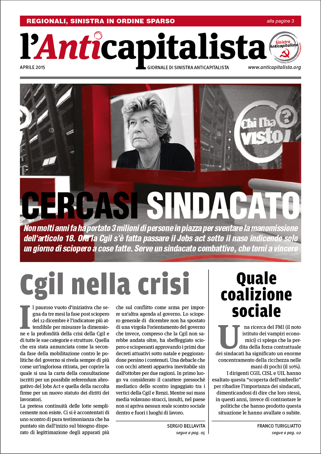 Progettazione grafica e impaginazione del giornale di Sinistra Anticapitalista