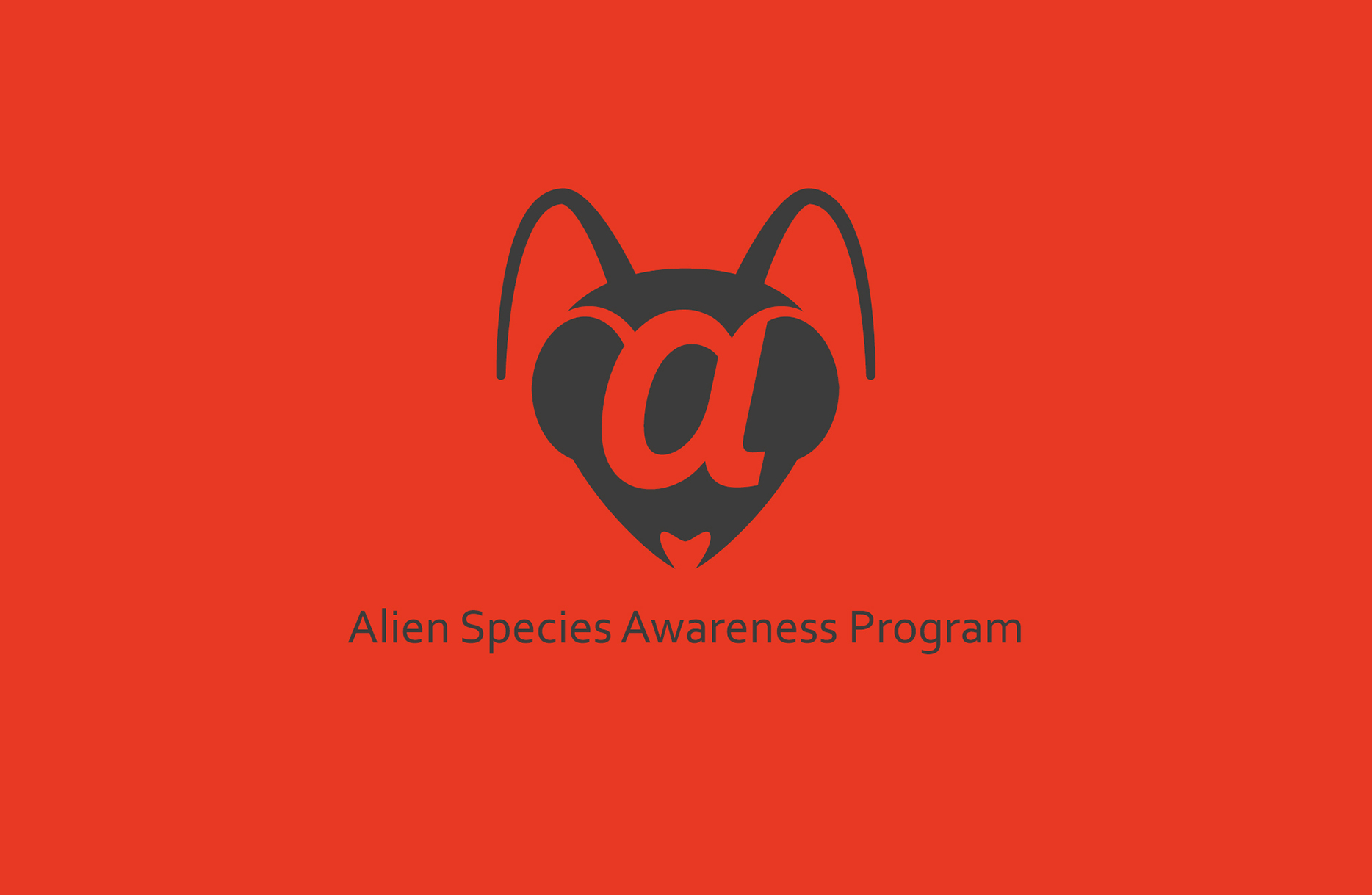 Il Logo è stato ideato tenendo in considerazione l’obiettivo generale del progetto: ridurre l’introduzione di specie aliene invasive grazie a un aumento della consapevolezza da parte dei cittadini. L’idea centrale è la stilizzazione di una forma aliena che viene posta di sfondo alla lettera “a” di alien. L’alieno è di colore rosso-arancio per sottolineare il concetto di pericolo e allarme.