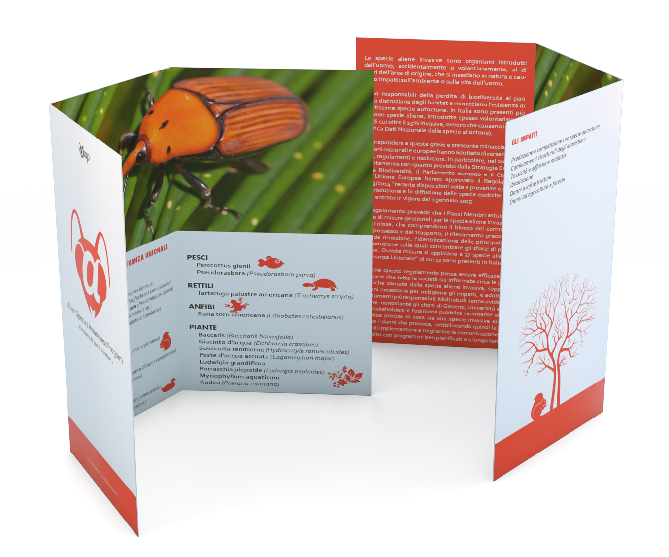 Il progetto europeo, finanziato attraverso il programma LIFE, è un progetto di comunicazione e sensibilizzazione volto ad affrontare il tema delle specie aliene invasive. Nell’ambito del progetto, l’attività ha riguardato la definizione dell’identità visiva e lo sviluppo dei materiali di comunicazione, realizzati per supportare la diffusione e la comprensione dei contenuti presso il pubblico.